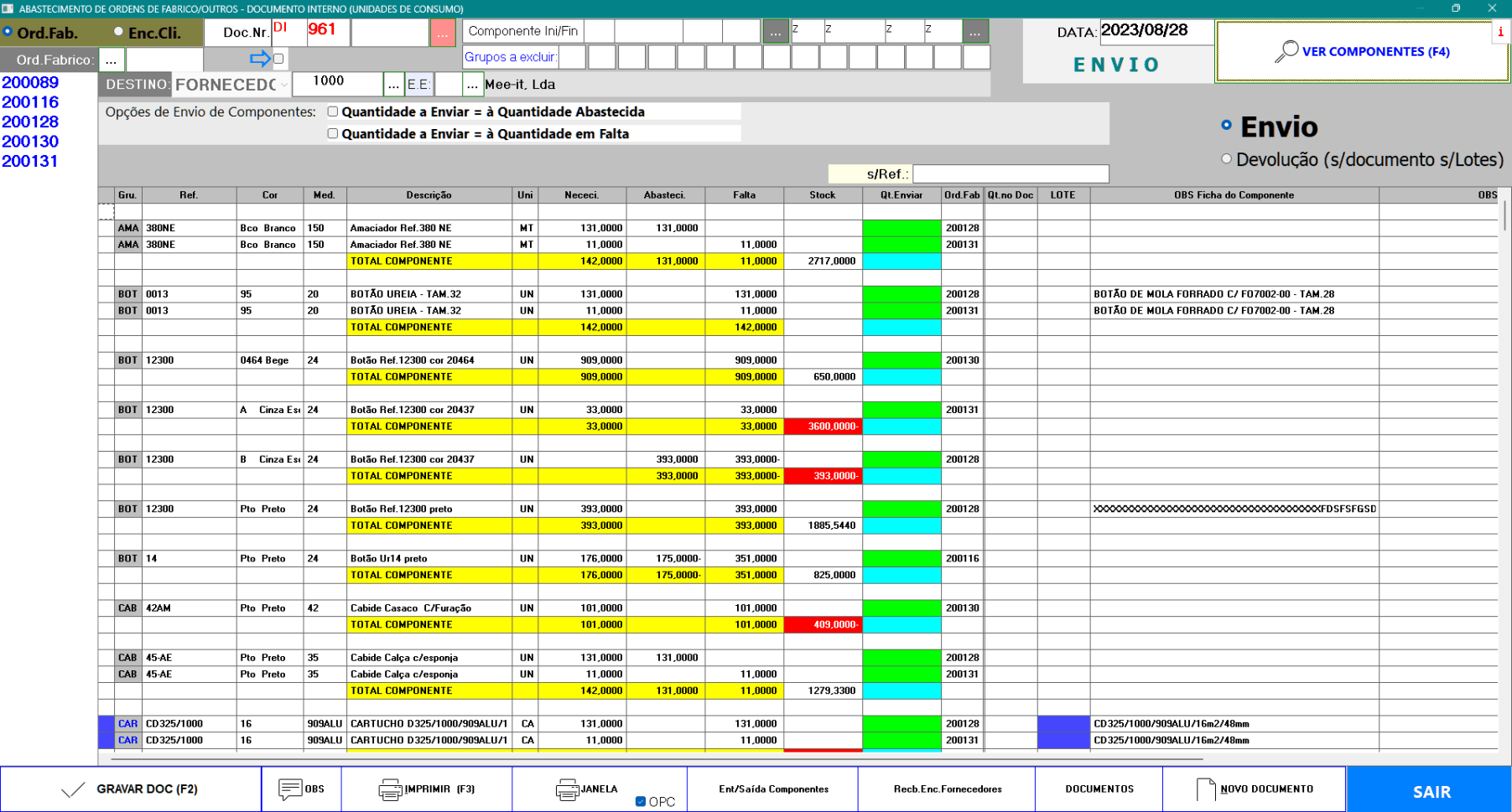 - Automatização na Gestão de Stocks (Matérias-Primas/Componentes/Acessórios ou Produtos Acabados) - Abastecimento de Ordens de fabrico automáticamente