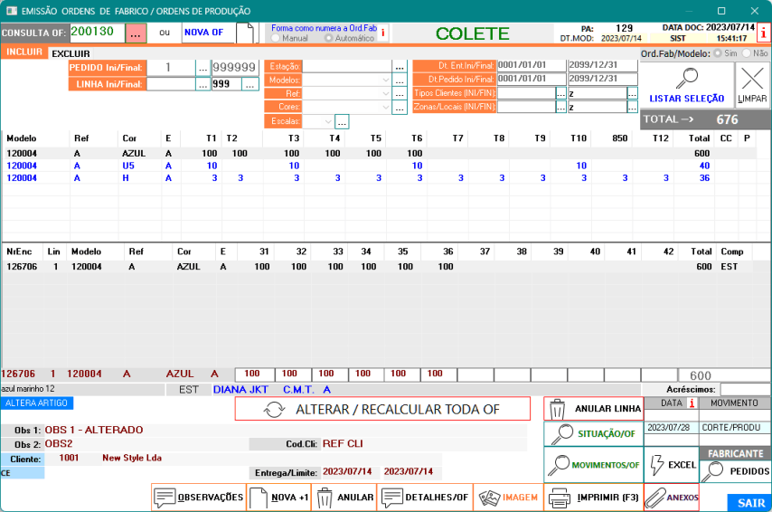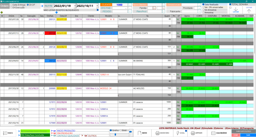 - Visão global da situação das Ordens de Fabrico (Ordens de Produção) - Planeamento Industrial